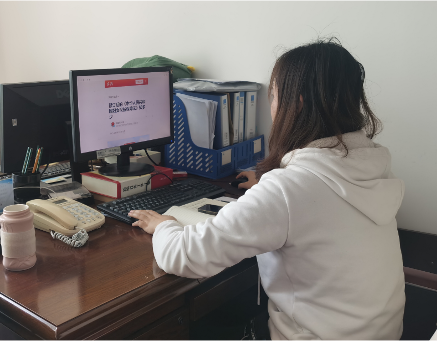 中心工会组织全体女职工观看了心理健康网络视频讲座和维权视频讲座,进一步向女职工普及心理健康知识,帮助女职工树立积极向上的健康心态,缓解和消除女职工在处理工作、生活、家庭及子女教育等方面的心理压力。组织中心女职工学习新修订的《中华人民共和国妇女权益保障法》,切实增强女职工法治意识,激励女职工大力弘扬自尊、自信、自立、自强精神,引导女职工运用法治手段维护自身合法权益,提升女职工的获得感、幸福感、安全感。